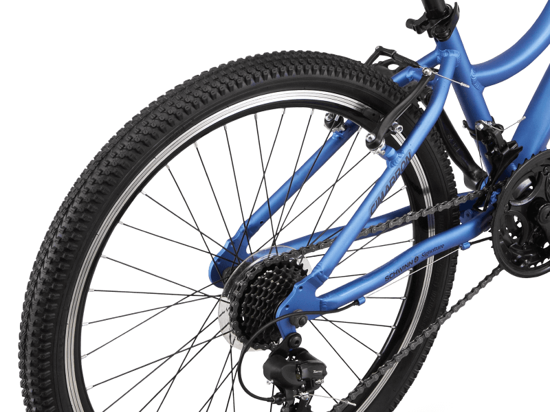 Durable rims with 1.95-inch-wide knobby mountain tires offer the grip and traction needed for rugged terrain.