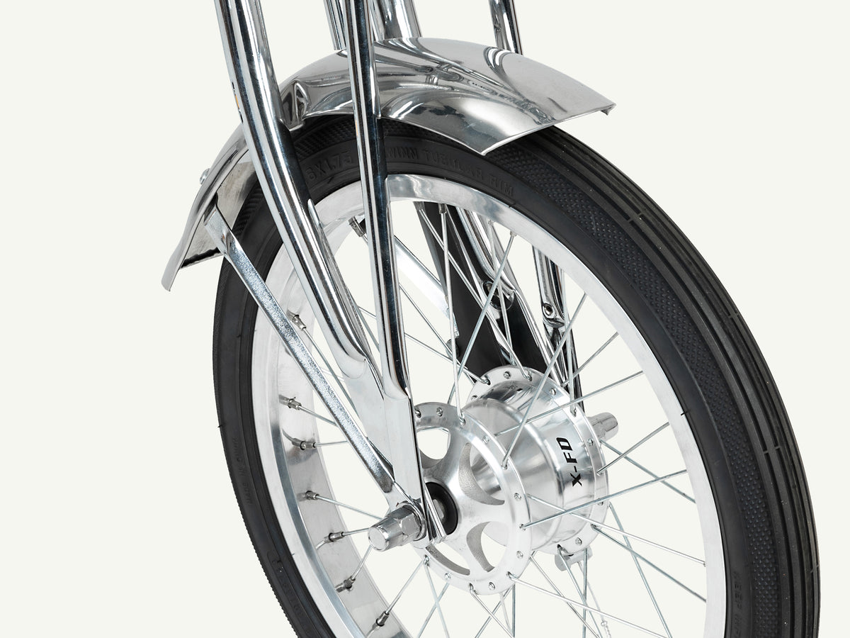 16” front wheel. 20” rear wheel features real Sting-Ray Slick tire. Lightweight aluminum rims. Fenders look great and help protect you from splashes.