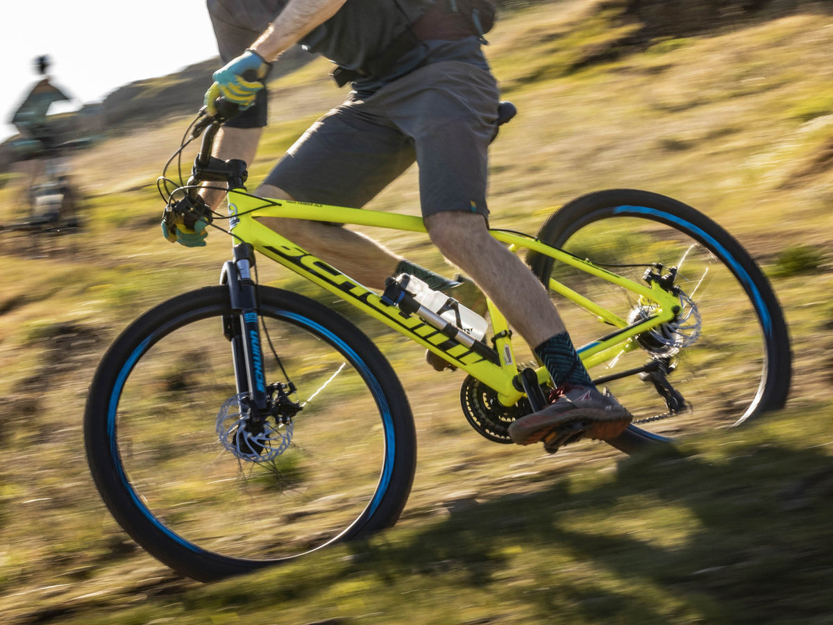 All-terrain, wide knobby mountain tires provide the grip and stability you need out on the trail, while alloy wheels add lightweight strength.