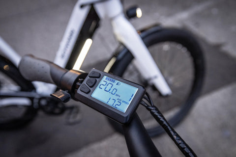 The Pedal Assist System, or PAS, is a feature of your e-bike that provides extra power behind each pedal. It all runs through the LCD display located on the handlebars, from here you can toggle between one of 7 levels of assistance and turn on the PAS. Once you turn it on, the system engages each time you pedal on the electric bike. If you don’t press the power button to turn on the PAS, it will feel like you’re riding a regular bike when you pedal.