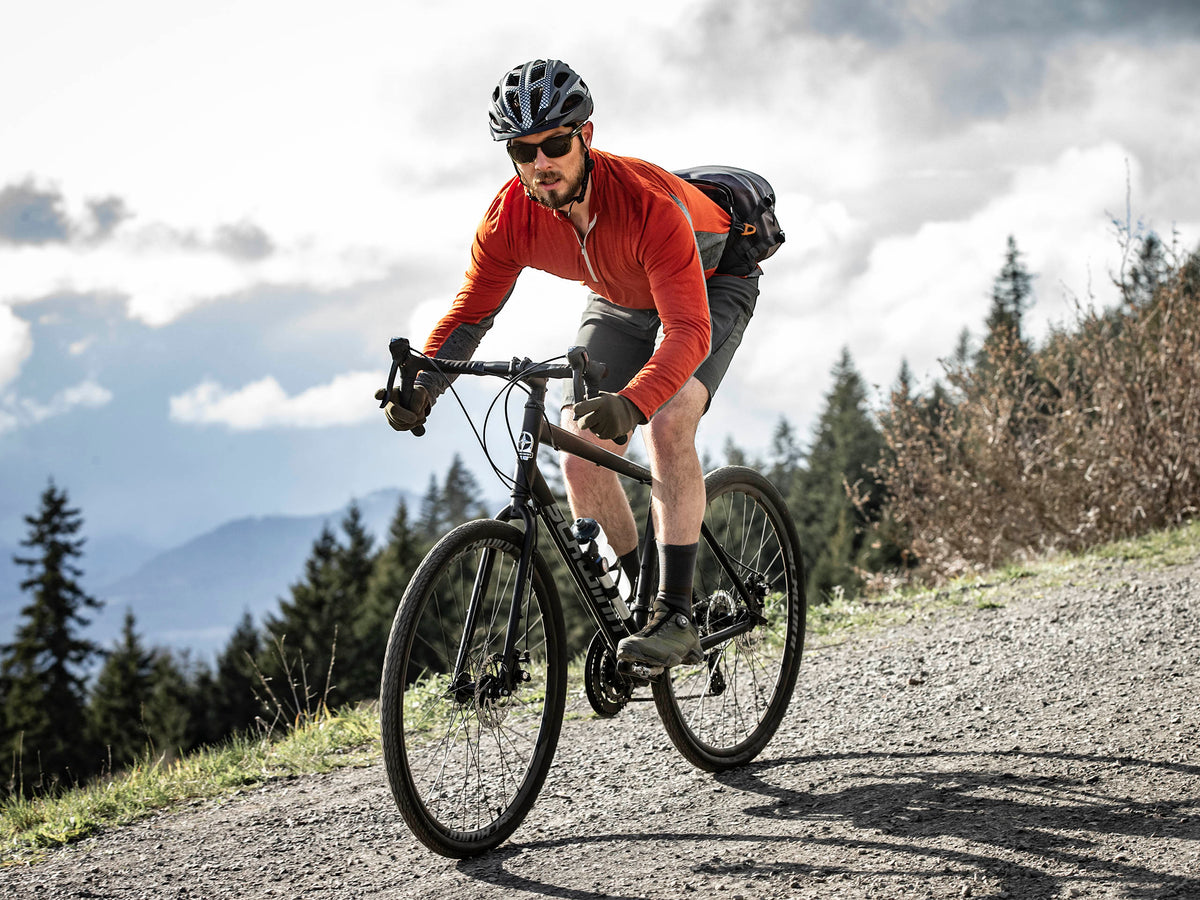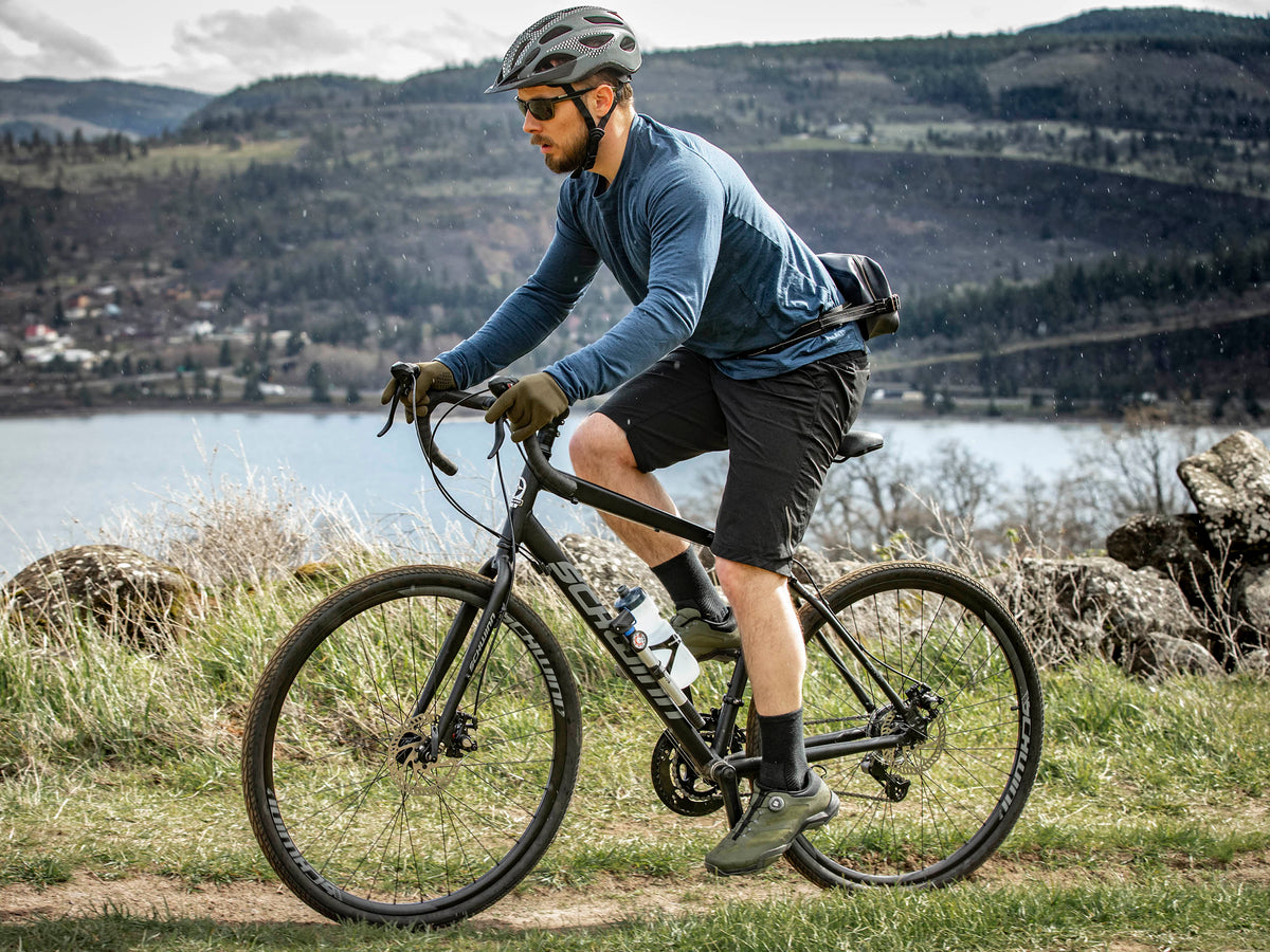 Schwinn aluminum gravel/adventure frame with rigid fork is great for fast riding on varied terrain. Schwinn 700 x 38c Multi -Terrain tires provide go-anywhere traction.