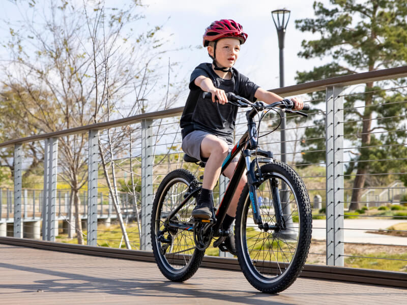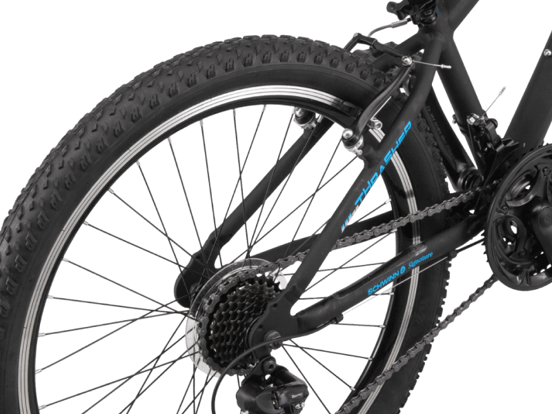 Take on the trails with the aluminum mountain frame, built for controlled handling on uneven terrain. The suspension fork soaks up bumps for an ever smoother ride.